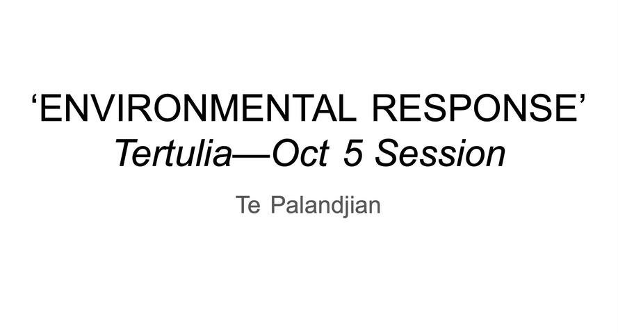 My talk, titled "Environmental Response" was situated with key terms, artists, and method: